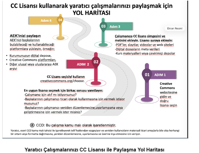 OER’ler oluştururken ve paylaşırken, başkalarının eserlerinizi nasıl kullanabileceğini netleştirmek için açık Creative Commons lisanslarından birini uygulayın!